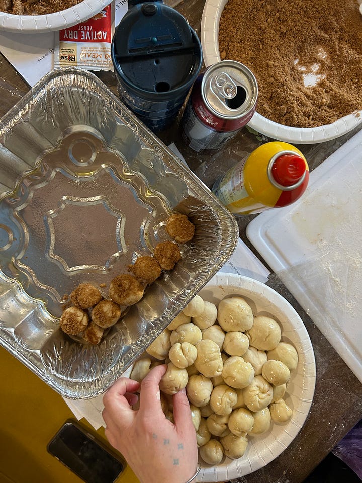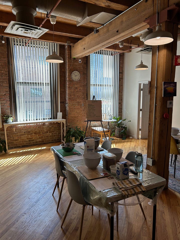 My most recent event with Chicago Minds was an example of this meaningful shift towards gathering. Their Community Organizer, Sarah Hormanski, asked for a facilitator to offer an experience to their members and the larger community of therapists. Although there were strangers in the room, many had shared connections and experiences that grounded us in safety. It was a beautiful afternoon—light beams, exposed beams, and beaming faces connecting and creating. I left feeling as full as the pans of risen dough. Check out some pictures below!