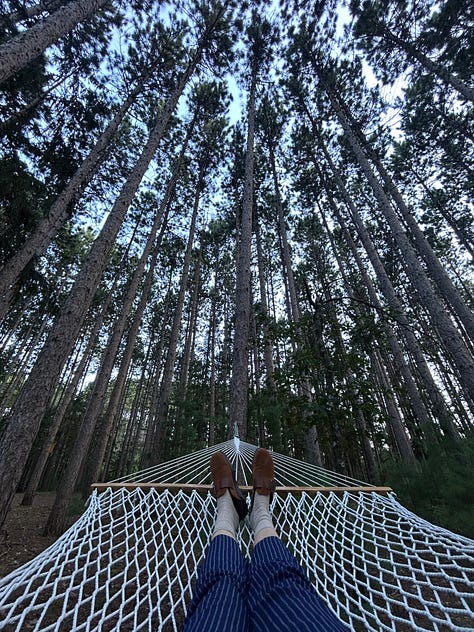 My sunbeam came as I spent a long weekend laying in a hammock in the Wisconsin pines marveling at how skillfully each tree found their spot of sun. The land sustained a full canopy and many seedlings and saplings erupted on the forrest floor. Not all would grow to see the fullness of the sun, but there was room and resources and roles in each dapple.